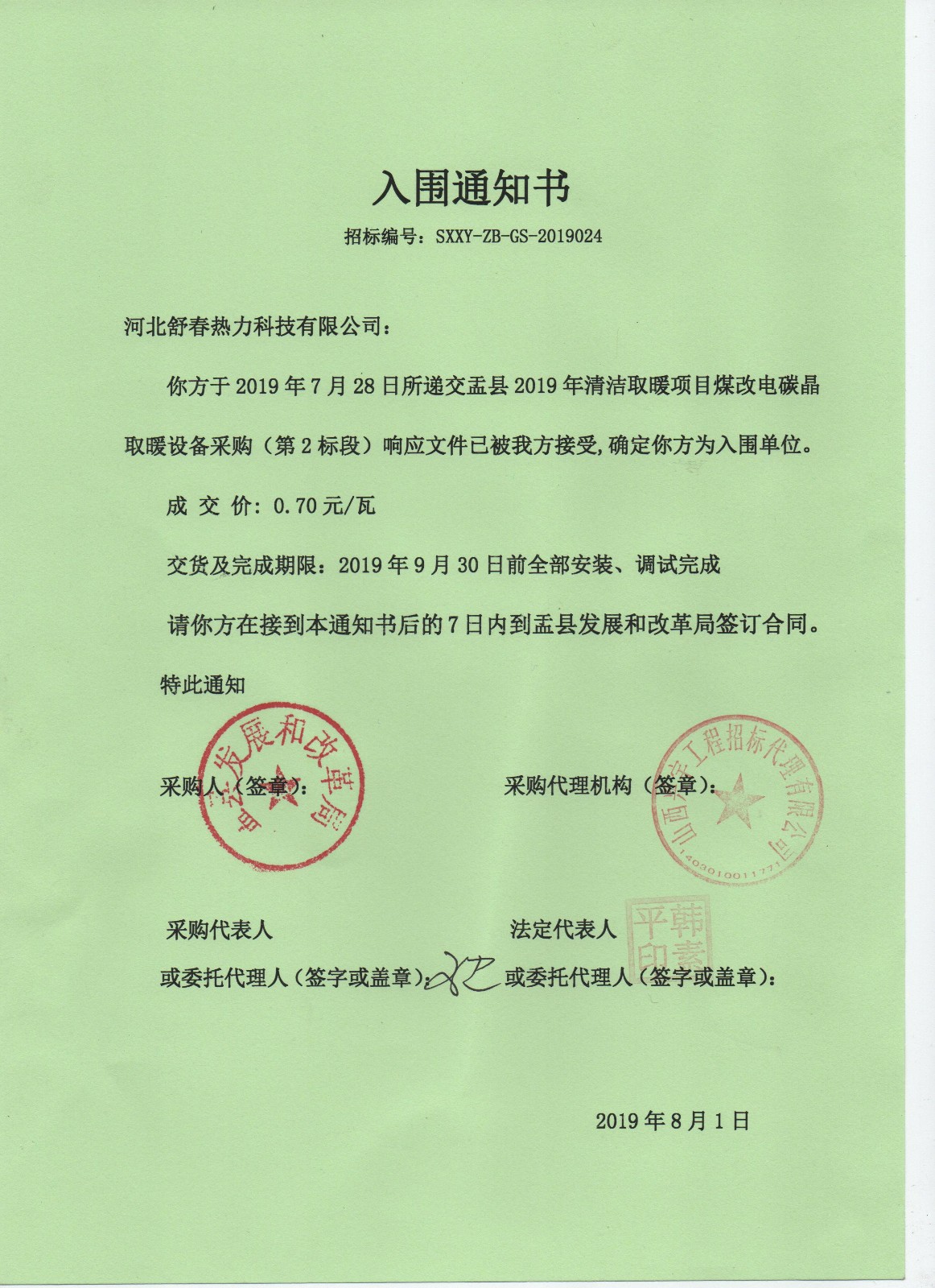 2019年舒春公司五連冠中標